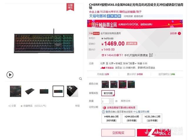 如果您对机械键盘感兴趣的话,那么可能会看到这样的现象,很多机械键盘产品都将采用樱桃轴作为卖点,尤其是Cherry MX轴。虽然Cherry自家的机械键盘宣传力度比较小,但由于自家产轴,所以旗下产品都采用的是Cherry轴。如果您对高端键盘感兴趣的话,那么Cherry樱桃MX6.0 RGB红轴键盘将会是不错的选择。目前这款键盘在天猫有售,价格为1469元。
