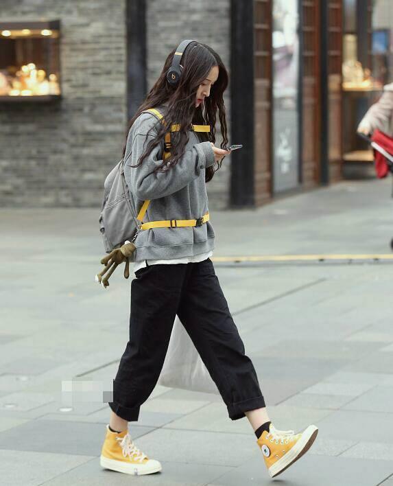 高帮匡威帆布鞋好搭不挑人 1.反正我今年是被黄色匡威1970圈粉了,好搭不挑人,像我这种腿粗的人,可以尝试高帮匡威+宽松的阔腿裤工装裤或者牛仔裤。小姐姐好漂亮哦。