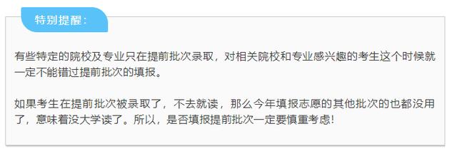 填报了提前批后还可以报本一批吗?在填报了提前批的志愿后,本一批的志愿也一样要填报哦! 从填报和录取时间来看,每年提前批录取结果还未公布的时候,本一批次的志愿填报已经开始。虽然本科提前批和本一批虽然填报的时间比较接近,但是录取时间不同,提前批次投档录取在前,本一批次投档录取在后,如果提前批次录取,则本一批次志愿自动失效,如果提前批次未录取,则进入本一批次投档录取。所以,对于那些过本一线的考生来说,在填报了提前批的志愿后,本一批的志愿也一样要填报哦! 填报公安(司法)类院校需要注意什么?公安(司法)类院校是关注度高,但让考生家长不容易弄懂的一类招生院校。我们这里谈谈填报公安(司法)类院校需要注意的几个方面。 (一)身体要求: 1.身体及体态等要求。 2.男生身高不低于1.70米、女生身高不低于1.60米。 3.左右眼单眼裸视力应在4.8(0.6)以上,无色盲、色弱。 4.考生必须参加体能测试且合格。 5.要求未婚,报考5所公安院校的年龄不超过22周岁;报考2所公安现役院校的,年龄不低于17周岁、不超过20周岁(截止报考当年8月31日)。 这里的公安现役院校就相当于军校,包括中国人民武装警察部队学院、公安海警学院。 (二)报考的流程: (1)填报志愿--(2)政审--(3)查看是否入围面试--(4)面试。 其中,填报志愿就在提前批中填报。政审是在填报公安类、司法警察类志愿后,须主动向所在县、市(区)招生办、公安局(分局)政工部门或辖区派出所索取《政审表》或《公安现役院校政治考核表》(报考中国人民武装警察部队学院和公安海警学院的考生领取该表格),并到户籍地或居住地(报考地)的县级公安机关进行政审。《政审表》或《公安现役院校政治考核表》由县级公安机关密封后交给考生带到面试点。 填报军队院校需要注意什么?军队院校报考的流程与公安(司法)类院校不同,根据去年的政策规定,首先,6月13日至22日期间,考生自行到报考所在地的县(市、区)人武部登记并进行政治考核。第二步,面试、体检时间安排在6月27日至28日,所有考生必须按规定的时间到指定的医院参加面试、体检,并在规定时间当天的7:00至17:30到报到处报到。第三步,查看体检是否合格,体检合格考生名单会在省教育考试院网站公布。 其流程如下: (1)政治考核--(2)面试体检--(3)填报志愿--(4)查看是否入围面试。 师范类专业前景怎么样?最近几年,教育事业的迅速发展,给师范毕业生带来广阔的就业市场。政府近年加大对中小学的投入力度,不小地方兴建幼儿园、小学、中学,提供了大量的公办教师岗位。 教师行业工作较稳、生活有保障等明显的优势。据南京师范大学对该校四届毕业生所作的一次问卷调查。94.5%的师范毕业生依然选择了教师作为自己理想的职业,而非师范类毕业生中也有不少欲加盟师资队伍。 我们来看网友怎么说: