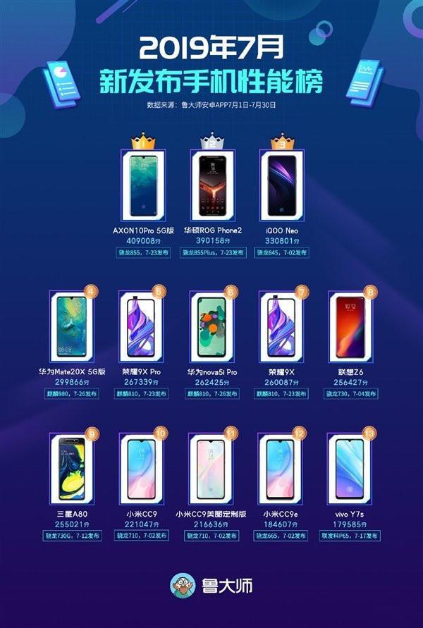 这一次获得第1名的是华为Mate 20X 5G版,作为国内第一款真正意义上的5G手机,华为在这款手机上采用了强大的麒麟980处理器,另外也运行了EMUI9.1系统,所以获得如此高的流畅度也是理所应当。第2名则是刚刚才发布的ROG Phone 2,这款手机毕竟采用的是高通骁龙855 Plus处理器,而且还标配了8GB的运行内存。