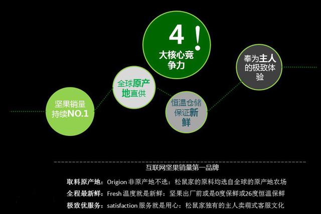 二、品牌形象 1.情感品牌——贯穿松鼠文化 三只松鼠着力打造传达自己的松鼠文化,无论是产品介绍页的第一页,还是包裹箱、果壳袋、服务卡片上的信息、附赠的卡包、手机饰品、员工的工作环境等各个场合与细节无一不流淌着松鼠文化的气息:快乐可爱,绿色天然,关爱环境。 2.形象好记的品牌名称 好的品牌名称,可以刺激到消费者的听觉器官,引起消费者的怡悦感进而产生丰富的想象和感触,对企业产品的销售也会产生很大的影响,特别是电商品牌,更应该注意这一点。三只松鼠就深谙此道。松鼠喜欢吃什么?答案是坚果,所以就取名为“三只松鼠”,动漫形象可爱且好记、传播性也很强,再者符合80、90人群喜爱的超萌动漫元素,迅速成为网购群体喜爱的品牌。 3.着力互动,将品牌立体形象化 三只松鼠首创中国电子商务客服场景化服务模式——与淘宝的亲文化不同,三只松鼠的客服化身为鼠小弟的形象,称呼每一个顾客为“主人”,从客服到售后,将“松鼠”品牌立体化,带给顾客一次完整的“主人与松鼠”的购物体验,还会时不时的对顾客卖萌“主人,鼠肥肥在呢”、“主人,快把我带回家吧”。其动漫化的形象将客服与顾客的关系演化成宠物与主人的关系,拟人化沟通让顾客觉得更萌、更被尊重,增添了品牌的独特性、趣味性、互动性。