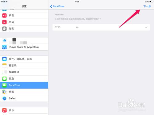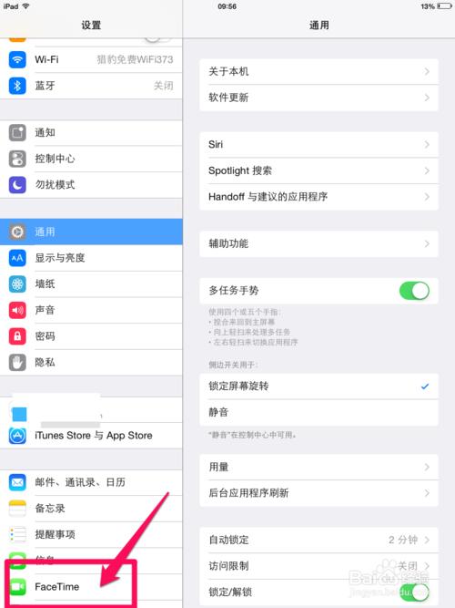 1、在自己的平板电脑进入设置后,选择Face Time。