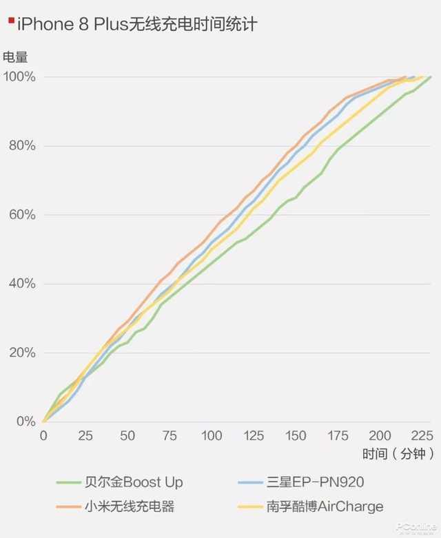 比起iOS 11.2,新版本系统下的iPhone在无线充电中的峰值功率有所下降,实测贝尔金Boost Up 7.5W无线快充时间只能维持短短10分钟,因此在iOS 11.3下贝尔金Boost Up无线充电器的优势就小了很多。 从“iPhone 8 Plus无线充电功率统计”图中可以看到贝尔金Boost Up虽然看似充电功率占优,但别忘了我们是统计其总输入功率,实际还要扣除电源适配器所消耗的功率,因此计算下来和其它无线充电器的输出功率应该是没什么差别。 我们可以对比一下同样支持7.5W快充,分别装载iOS 11.2的iPhone X和装载iOS 11.3的iPhone 8 Plus,从20%电量开始充电1小时的平均功率:iPhone X为6.76W,而iPhone 8 Plus仅为5.87W,差距还是比较大的,一定程度上说明苹果在iOS 11.3系统中进一步对充电功率进行限制。 测试总结![]() 经测试,我们终于可以下结论:①. 对于三星Galaxy S9+,官方原装无线充电器依然是首选,即便是老型号EP-PN920依然吊打一众第三方无线充。②.对于iPhone 8 Plus,由于iOS 11.3系统对无线快充的功率进行了调整,因此短期内就不需要纠结官方推荐的高价无线充电器,选购知名品牌的入门级无线充电器即可。 这里也提醒大家一下,目前无线充电器市场上有很多“野鸡产品”,售价30、40多块的都有,求真实验室建议大家还是谨慎选购,低价产品不一定具备FOD异物检测能力,如果不慎把金属物体放到劣质无线充电器上,金属会被迅速加热,很可能造成意外。 产品概览小米 |更多手机电池/ 小米无线充电器无报价 |