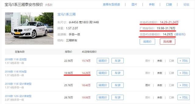 第一款,宝马1系 指导价:19.98-31.78万 终端优惠价:14.29万元