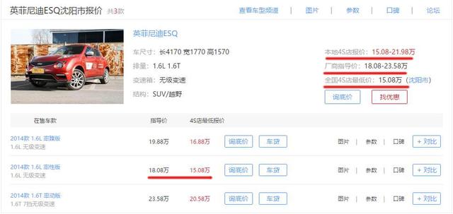 第三款,英菲尼迪ESQ 指导价:18.08-23.58万元 终端优惠价:15.08万元