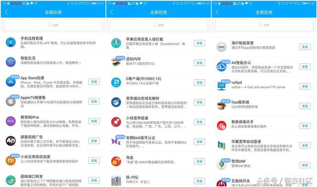 作为极路由一直以来的亮点,丰富的第三方应用在极X上得到了延续。这极大改善了无线路由器在不同场景下的使用体验。由于极X的硬件性能很强悍,因此第三方应用的安装并不会使极X背负沉重的负载。