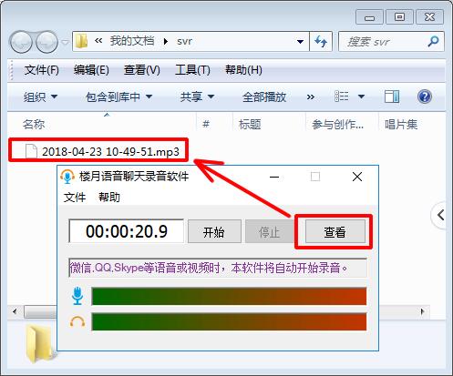 4, 当自己或对方挂断Skype通话时,该Skype录音软件将自动停止录音,并将双方的声音保存到电脑上,可以通过点击软件界面上的"查看"按钮找到刚才录制下来的内容。软件默认是将这些内容保存在我的文档下的svr文件夹中,我们也可以进入软件的设置窗口,来修改其保存的位置。
