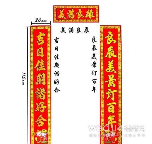结婚的对联怎么挂一、新婚对联挂在大门 挂在这里的话对联尺寸根据门的长度的宽度决定,虽然大幅的对联看起来很气派,但是与门不搭的话,就会降低效果。门是展现一家人地位的一个象征,所以选择合适的大门结婚对联是重要的。里面的内容也要和结婚有关系,呈对偶句表示,花纹也要和新婚有关系。 上联:相爱相亲家和人寿吉星照 下联:同心同德水秀山青喜事连 横批:爱情永笃 上联:相敬如宾好好和和四季乐 下联:钟情似海恩恩爱爱百年长 横批:百年好合 上联:喜气满门春风堂上双飞燕 下联:新事临阶丽日池边并蒂莲 横批:双喜临门