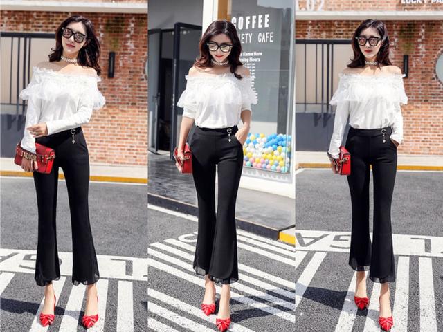从去年到现在,喇叭裤实在是非常地火,那么今期小编和大家分享以下2018流行的九分喇叭裤,搭配对的上衣,不仅好看还特显瘦,你穿上了吗?还没有的话,就跟紧小编的脚部继续往下了解了解吧~ 搭配1:一字肩雪纺衫+黑色蕾丝九分喇叭裤
