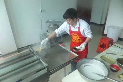 三、石磨肠粉 石磨肠粉,是最近2年流行的早餐,石磨肠粉要好吃选米也很关键。首先是泡米,把米淘洗两三次,泡几小时以上,再磨浆,中间要勤换水,尤其是夏天,再就是蒸肠粉,火候大小很关键,火候时间刚刚好蒸出来的肠粉才滑嫩。