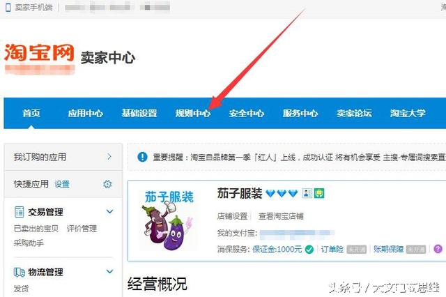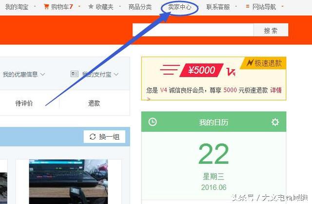 4 在登录后的界面,点击上方菜单的 卖家中心