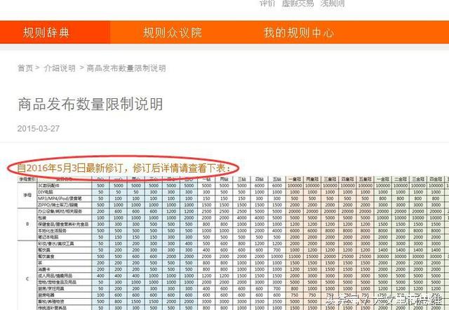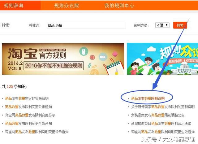 7 在搜索出来的结果中,打开 商品发布数量限制说明