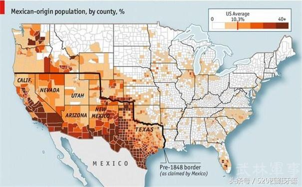 美国有没有被西班牙语占领的节奏!!! 现在我们直接切入正题,一起讨论下为什么美国的第一大外语是西班牙语? 有果必有因,一件事情的存在也往往不是一个因素造成的!小编现将自己的看法归结如下: 历史因素。 这要从美国这块土地的原始主人说起,最开始这片土地上生活着大量印第安人,后来西班牙殖民者到来后把西南部(主要为现在的加利福尼亚州、内华达州、亚利桑那州、犹他州、新墨西哥州和德克萨斯州)开辟为殖民地,并设立了墨西哥总督管理包括这片土地在内的广大墨西哥土地。后来墨西哥独立运动高涨,殖民者被驱逐出去,这片土地由墨西哥接管。1846的美墨战争,墨西哥战败,割地赔款!原来这片土地上的说西班牙语的墨西哥人也变成了美国人。直到现在,西班牙语在这些地区使用依然很广泛~ 美墨战争中墨西哥失去的土地(黑线以南):
