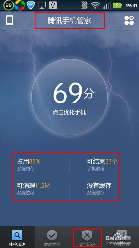 随着手机技术的不断发展,手机应用软件处于井喷状态,各种应用疯狂涌入大家的手机中,杀毒软件同样也是 各大安全厂商纷纷推出杀毒软件手机版,现在的手机杀毒软件是种类较多,很多人在疑惑为什么会有如此多的安全软件开始着手手机安全领域,对于手机的安全来说,选择一款好的手机安全软件无疑是最为重要的。 腾讯手机管家是一款免费的手机安全软件,集合了多种手机优化和杀毒功能,可以在相应的界面中进行,一键体检、手机加速、智能省电、流量监控、病毒查杀及隐私保护等功能多种手机防护和优化功能。 那么下怎么使用腾讯手机管家来保护自己的手机安全呢? 1、首先要在你的手机中安装一个“腾讯手机管家”软件,然后打开运行程序,在“腾讯手机管家”的首页面中可以看到目前手机包括内存占用、手机可结束进程、系统垃圾可清理、系统缓存等方面的一个大体情况