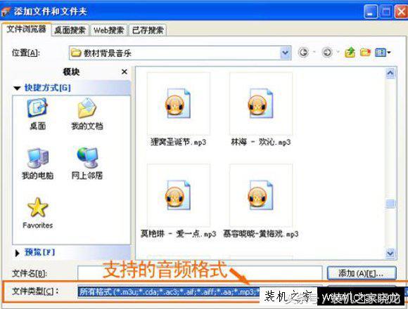 2.接着就添加音频,音频的格式比较多,特别要注意的是无损音频ape格式文件是不能直接添加的,一般情况下还是可以的。