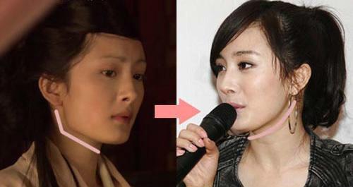 先让我们来对比一下下巴,到底是动了杨幂的下巴,难道是手术刀吗?