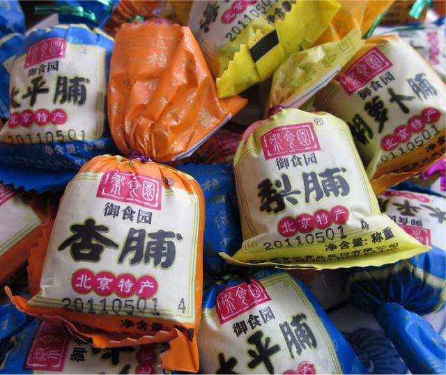 又名茯苓饼,是北京的一种滋补性传统小吃。茯苓饼皮薄如纸,以蜜饯松果为馅,口感香甜,风味独特。茯苓饼具有保健效果,吃了有助于提高食欲,促进消化,加上味道也不错,建议可以多带一些回去。 推荐:稻香村 NO.4 北京果脯