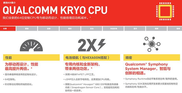 骁龙820采用了定制Kryo架构CPU 高通骁龙820方面,采用14nm FinFET LPP工艺,包含定制64位Kryo四核架构,主频可达2.2GHz,四个核心单元均为高性能大核。在实际体验时,不论是低负载场景还是高负载常见,骁龙820都会启用大核上,功耗,续航及发热问题控制难度较高。 但在终端上应用时,手机厂商会根据Android原生DVFS调频调压,做进一步的CPU工作频率优化。所以这也是为什么本次对比选择了三星GALAXY S7 edge作为体验机,作为骁龙820独家首发产品,三星在CPU方面的调教肯定要更有经验和说服力。