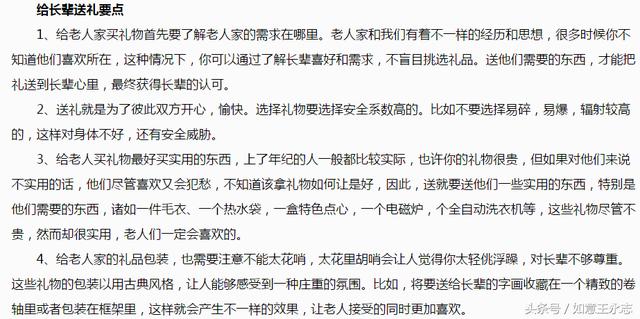 百善孝为先,送的是健康和吉祥 过年啦,我们这些小青年都不知道送长辈什么礼物好,也许有些人知道怎么选择,但是无论知不知道选择一款合适的礼物十分重要! 那么送长辈什么礼物好呢? 给长辈和老人礼物是表达我们的敬爱之心,百善孝为先,送的是健康和吉祥,对于他们礼物不在贵重在于实用,我们要充分考虑到礼品的实用性和安全性。 到了他们这个年纪对于那些花花绿绿已经看得非常淡了,华而不实的礼品还容易招来批,男性长辈可以考虑:酒杯、保温杯、茶具、文玩、字画等,爱抽烟的还可以往健康一点的烟具考虑。女性长辈可以考虑珍珠项链,尤其是现开的项链,梳子和小家电等。爱玩的送玩物,居家的送实用品。 有些老人爱喝茶,并且这是我国几千年来的传统,茶是大自然对于人类的恩赐,不仅仅有利于身心健康,自古以来茶道多富有人生智慧。所以选择茶具和上好的茶叶也能表现一片孝心哦。