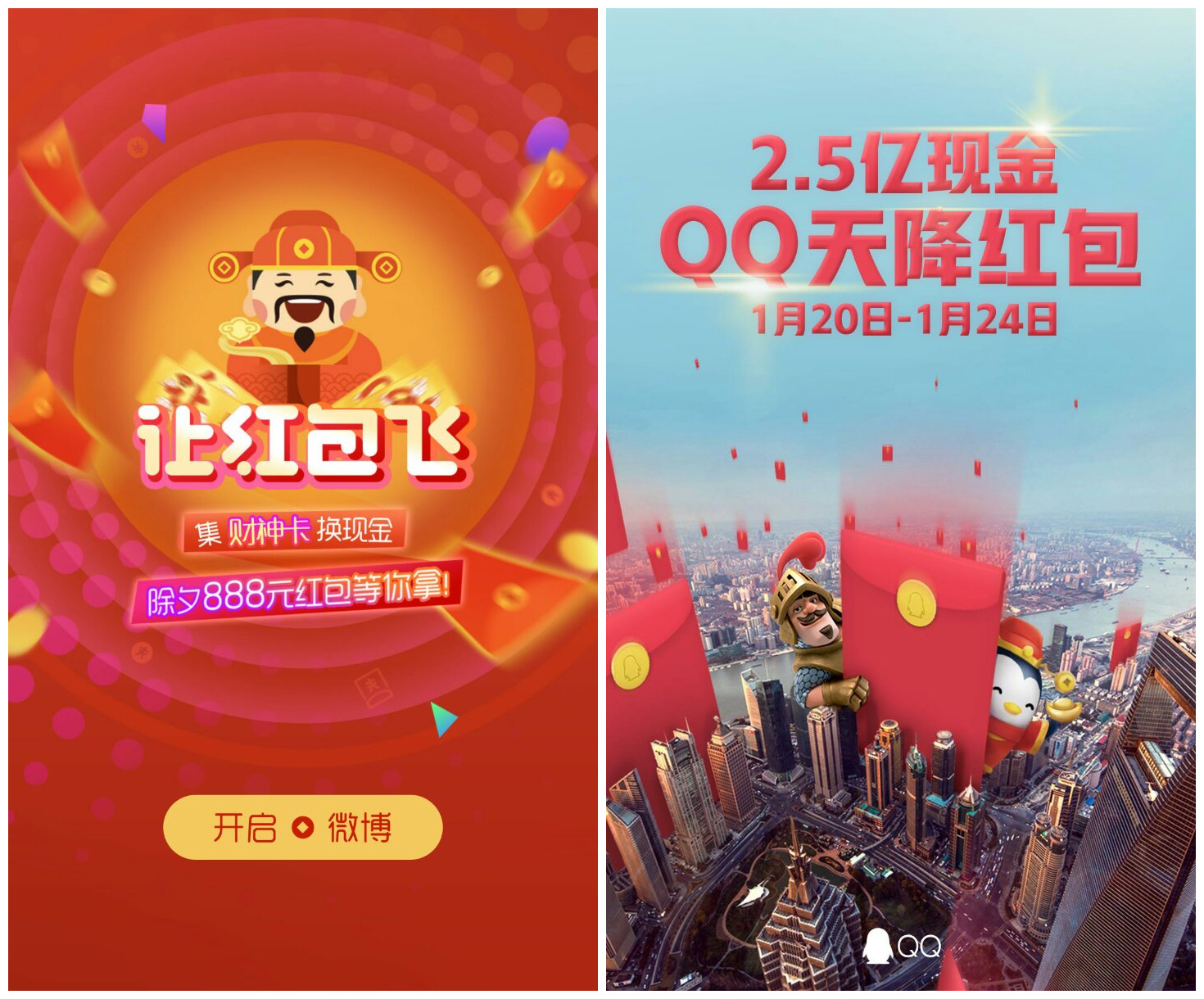 今天,新浪微博上线了“集财神卡换现金”让红包飞的活动、QQ则推出了“QQ天降红包”活动。而对于乐外卖商家来说,可以借助此次各平台的热点活动,结合自己的店铺,推出相关的营销,如:朋友圈集赞、集评论、分享、转发微信公众号、赠送优惠券、礼品,微博、大众店铺分享、评论店铺等各类活动。就算是提供几十个“福”字让用户扫一扫,这样简单的营销,或许也能带来意想不到的效果与惊喜。 |