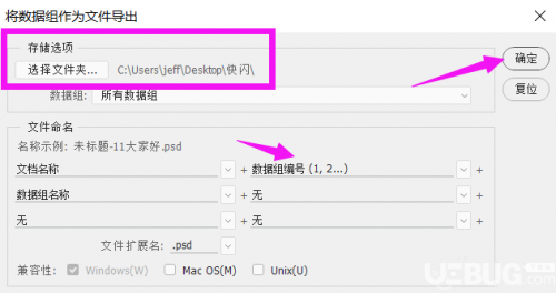 在菜单栏中依次点击【文件】——【导出】——【数据组作为文件】,如图,