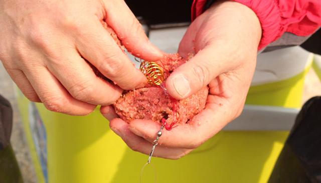 特点: ①炸弹钩一般用糟食作饵,饵团小如鸡蛋,大如拳头,如此多的饵料入水,分散面积大,气味远遁,诱鱼力极强。 小贴士:海竿野钓,饵团入水多会引来一群小杂鱼的哄抢而达不到引诱大鱼的作用,所以要适当加多饵料中粗颗粒的比例,加大饵团的黏度,减缓饵团溶散的速度,延长等待大鱼问钩的时间。