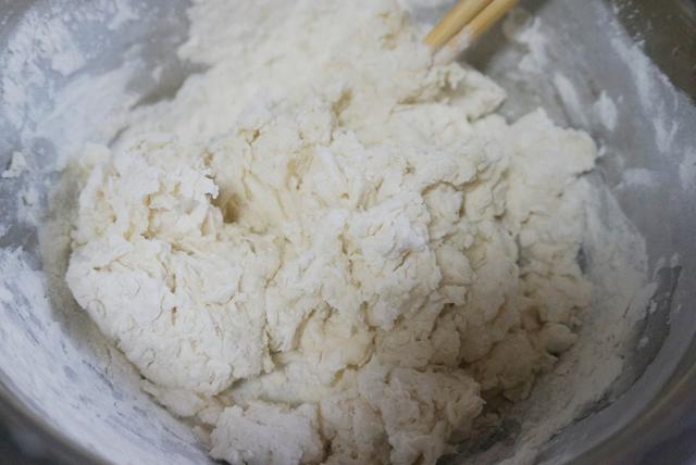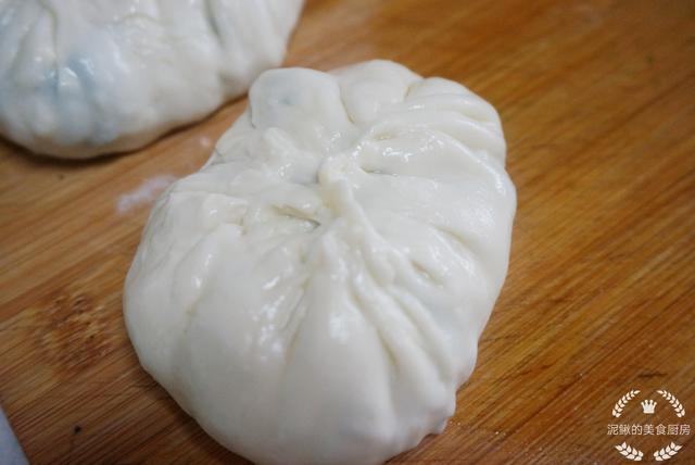7.包起来,捏好。因为面有些软,所以我是放在案上包的,样子有些难看。