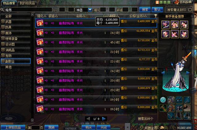 2、然后我们来说下粉卡,粉卡的话建议,倒卖18升20的属强粉卡比如 崩溃的哈布、占星师、月光漫步者、多米娜等,在6.5的时候最低时候是570万左右,在6.6涨到870万左右,这里有个机会点就是6.6领取泰波尔,打造附魔的人多,按照平时600万上下可以进行倒卖,周三之前可以进行出售,一般在700多万还是值得进行倒卖