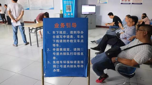 在业务大厅休息区内等待签章办结业务,领取检验标志和环保标志。