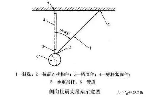侧向抗震吊架:用以抵御侧向水平地震力作用。