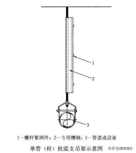 单管(杆)抗震支吊架:是由一根承重吊架和抗震斜撑组成的抗震支吊架。