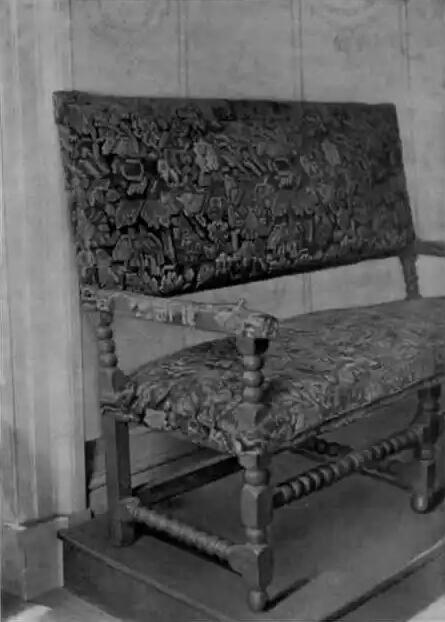 【约1700年左右的沙发】 一款非常有趣的沙发,也属于齐本德尔艺术风格,它被发现在长岛的一个农场房子里面,现在属于E.B.威利茨先生。