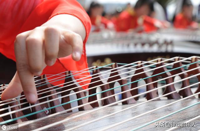 古筝分四组。倍高音1,高音12356,中音12356(do re mi sol la),低音12356和倍低音12356。 当乐曲出现4(fa)或7(si)音时,只能依靠左手在筝码左侧的弦段上用力按压3弦或6弦,使其增加张力获得。具体4音的奏法是先在距离筝码约1分米处用力按压3弦,然后用右手弹奏这根弦,即可奏出4音来。同样,在演奏7音时,也用左手在筝码左侧按压6音弦即可。 筝常用于独奏、重奏、器乐合奏和歌舞、戏曲、曲艺的伴奏,因音域宽广,音色优美动听,被称为"众乐之王",亦称为"东方钢琴"。 学习古筝演奏,音准是最重要的环节之一,初学者一方面需要接受严格的听觉训练,能唱准、听准各种调的五声音阶及七声音阶,同时还需要努力学会古筝的调音方法,逐步做到能自己调音并且准确。这里试以S型二十一弦古筝定调五声音阶为例: