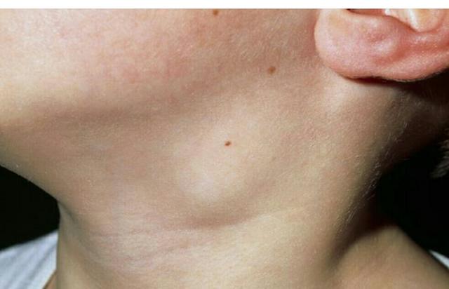 2.粉瘤 这是最常见的一种情况,多见于正在成长发育的年轻人。主要是因为皮脂腺排泄管阻塞,皮脂腺囊状上皮被逐渐增多的内容物膨胀所形成的潴留性囊肿。这个病变的特征性改变是突出于皮肤的球形肿物,不易推动,表面光滑,没有波动的感觉,可以挤出豆腐渣样的物质。多见于头面部、颈部、胸背部位。一般没有自觉症状,如果继发感染会出现疼痛、化脓的症状。 3.淋巴结肿大 小孩儿常可见耳朵后边有可以活动的小疙瘩,质地比较坚韧,直径不超过3毫米~10毫米。这是因为婴幼儿时期淋巴系统发育旺盛所致,是正常的。