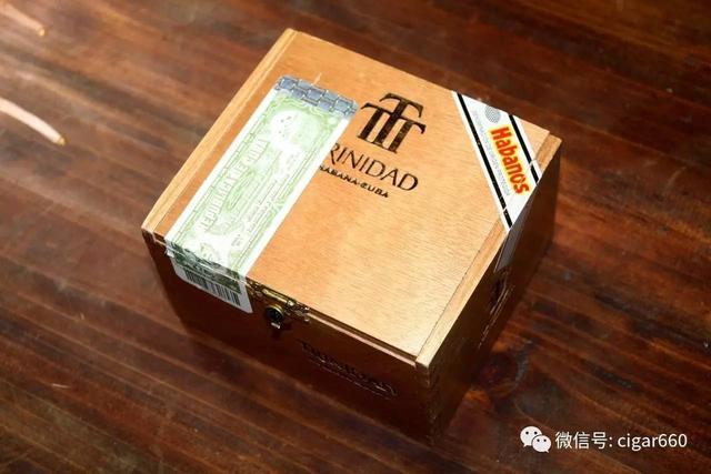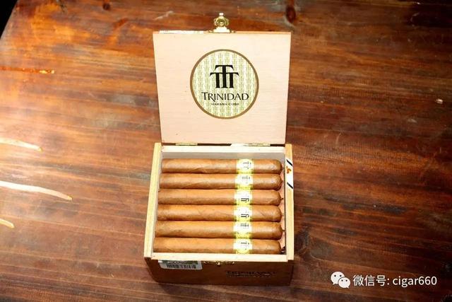 【雪茄品鉴】 特立尼达●雷耶斯 ( Trinidad Reyes ) 品型:小高朗拿T 长度:110mm 环径:40 浓度:中型 产地:古巴 描述:Trinidad雪茄于1991年推出,专门为卡斯特罗设计作为一种礼物,只赠给重要的客人,所用的是来自Vuelta Abajo地区最好的茄叶卷制而成。这牌子算是和Cohiba一样知名度的古巴雪茄名牌。主要以木香,咖啡,奶油,蜂蜜为主,口感顺滑。是一款性价比不错的雪茄!