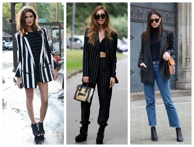 【厚肩膀-条纹西装】 说完了肩膀宽,咱们再说说肩膀厚吧,推荐你穿一件条纹西装,不仅百搭还很显瘦。一件长而干净线条的风格将会简化你的整体外观。条纹西装可以多备上几件,它将是今年时髦圈的主菜。