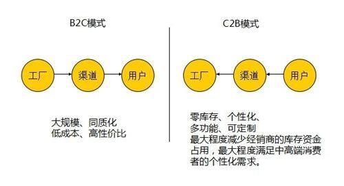 4、C2B(Customer-to-Business) 这是当今正在萌芽的一种新模式,通过几个顾客的一起提需求,让厂家进行定向生产,这样能解决很多以前B2C模式不能解决的问题。