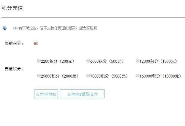 图8 相比较来说,这个价格还是比较合理的。充值的积分也可以用作蜘蛛吃,这个比较便宜,3000次蜘蛛的来访只需要10个积分,如图9: