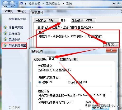 虚拟内存设置不当也可能导致出现内存不足问题,根据微软公司的建议,虚拟内存设为物理内存容量的1.5--3倍,例如512MB的内存,虚拟内存设定为768--1536MB;1G的内存,虚拟内存设定为1536--3072MB。,如果设置得过小,就会影响系统程序的正常运行。可以重新调整虚拟内存大小,以