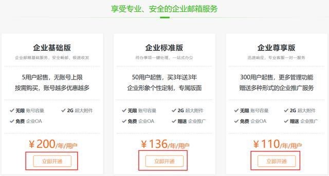 或者在页面中间位置,邮箱类型介绍上,点击【立即开通】