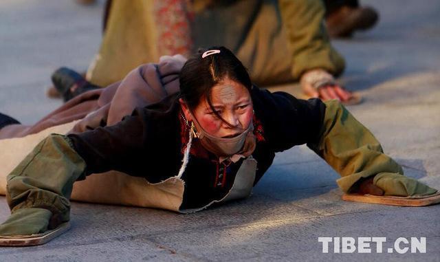 5/17图为磕长头的女信徒。(图片来源:中国西藏网 摄影:施加勇)
