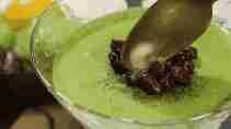 前面的工作都做好了之后,我们就可以把这个抹茶奶油面糊弄进事先准备好的模具之中了。然后冷冻几个小时之后就可以拿出来吃了。这个看起来很小清新,而且颜值真的很在线。在夏天那么炎热的天气可以看见这样的绿,也是瞬间没那么热了吧!