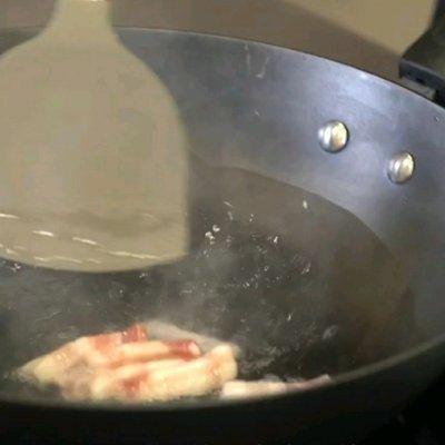 3、加入五花肉炒香