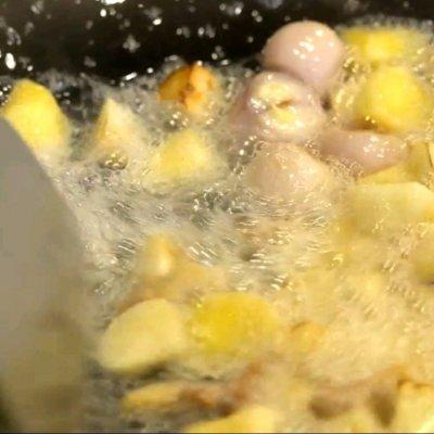 4、再加入姜粒,干葱头,蒜粒
