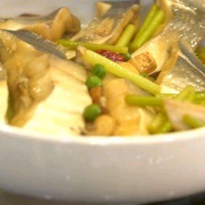 海鲜我喜欢家烧或者清蒸,只要食材够新鲜,绝对不会腥,好吃的不得了。 By 记家 用料鲳鱼 500G 2条 蒜头 5克 姜粒 5克 干葱头 5克 老酒 120克 生抽 1勺 米醋 4克 蒜苔 10克 青豆 10克 油 15毫升 五花肉 10克 葱段 5根 蚝油 10克 干辣椒 3个 糖 1勺 盐 1勺 做法步骤