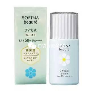 SPF50+PA++++混合防晒口袋香港直邮价:RMB160.00/支这个会有一股酒精味,所以敏感肌请慎用,而且是保湿款的,油皮会不太喜欢。但是对于中干性以及混合肌肤来说,清爽不油腻,很容易推开,如果说缺点就是它不防水,去海边的话不太合适。@很小很小的一个小号:酒精味比较浓,控油效果很好,价格还实在,很推荐学生党。 第7位sofina芯美颜蓝色小花防晒