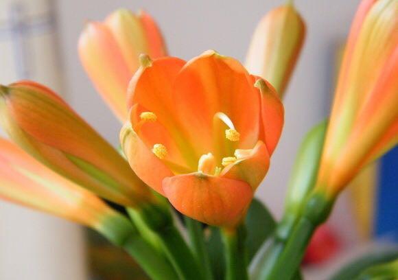 三.光度,君子兰喜散射光,忌直射强光。冬季室内养护,花盆要放在光照充足的地方。特别是在开花前要有良好的光照,有利于花蕾发育壮实。开花后适当降温,避强光,保持通气良好,有利于延长花期。还有一点,君子兰也有趋光性,所以,一定要经常挪动放置的位置和方向。那一侧长的不是太好,就把那一侧放在向阳的位置 。