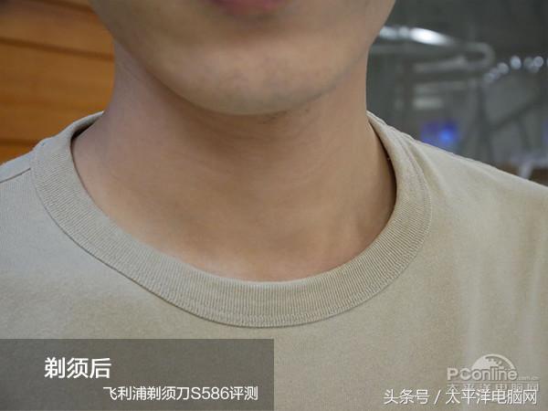 剃须刀简约流畅的手柄设计完美符合人体工学,防滑的同时还易于掌握,在进行剃须动作时改变剃须刀的方向和力度都能轻松控制。 小结:飞利浦S586在外形上足够时尚和低调,其简约和动感的线条表现出了男士硬朗大方的气质,富有科技感的双刀头也是一大亮点。 2 真人剃须实力测试