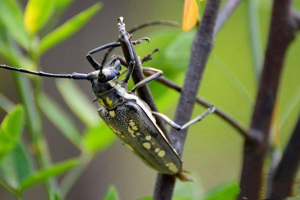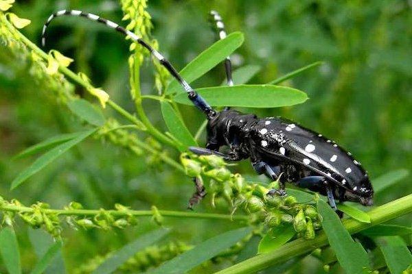 夏季是天牛产卵高峰、成虫取食高峰。天牛虽小,但是其造成的损失却是巨大的。因此夏季果农们要注意及时防治,避免天牛危害影响果农们的经济效益。 天牛一生中,天牛幼虫在树体内蛀食生存时间最长(可达到8个月以上),对果树危害也最为严重。雌虫在产卵前先用上颚咬破树皮形成刻槽,然后在每个刻槽产一枚卵(也有多枚)。当卵孵化出幼虫后,初龄幼虫在树皮下取食,待龄期增大后,便钻入木质部为害,幼虫在树干内活动,每隔一定距离便在树皮上开口作为通气孔,向外推出排泄物和木屑。