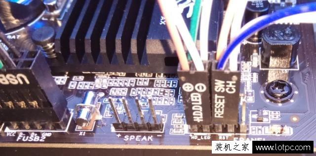 好了,下面开始插入开关机跳线,主板上面已有明确的标识,根据标识插入即可:
